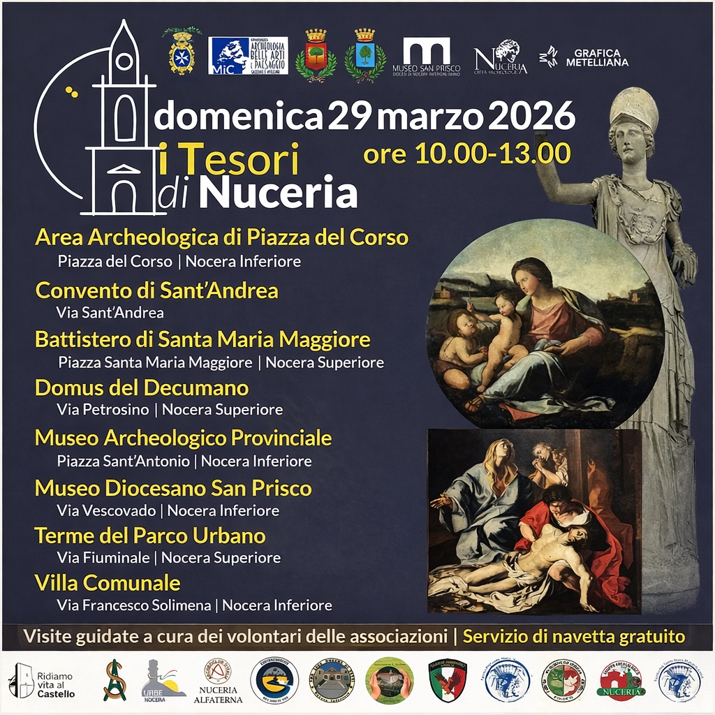 L’iniziativa, che negli anni ha saputo coinvolgere un numero sempre crescente di cittadini, associazioni e visitatori, rappresenta un’importante occasione per riscoprire le radici dell’antica Nuceria Alfaterna attraverso l’apertura straordinaria di siti di grande interesse archeologico, monumentale e religioso. Un percorso diffuso che unisce idealmente i diversi luoghi della memoria, rendendoli accessibili e fruibili grazie all’impegno di volontari, guide e realtà associative del territorio.
