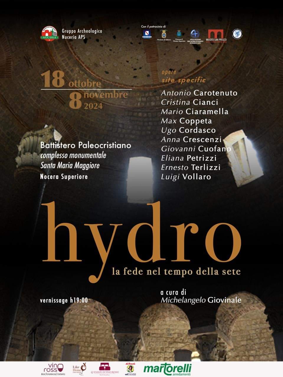 Si inaugura venerdì 18 ottobre 2024 - vernissage h 19:00 - la mostra “Hydro - la fede nel tempo della sete” fra le antiche mura del nostro Battistero Paleocristiano.